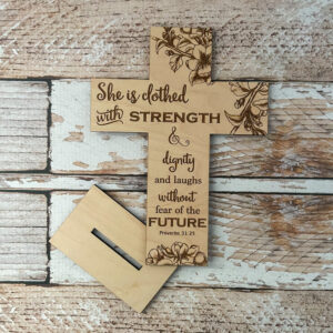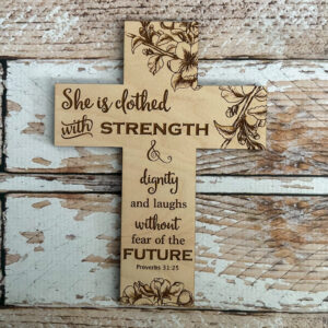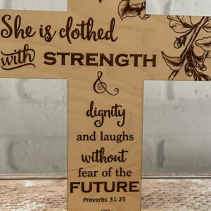 A perfect gift as a reminder for women to walk with their heads up high and keep pushing through life’s challenges.  Let her know she already wears strength and she is to have no fear of the future. God’s got her back!