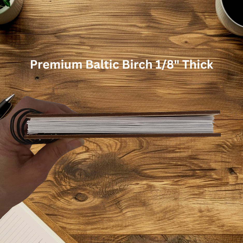 Personalized notebook/journal made of 1/8″ thick Premium Baltic Birch plywood. Perfect gift for someone who loves to write their prayers, take sermon notes, bible study, write down their thoughts, and even for doodling. Choose blank or ruled pages.