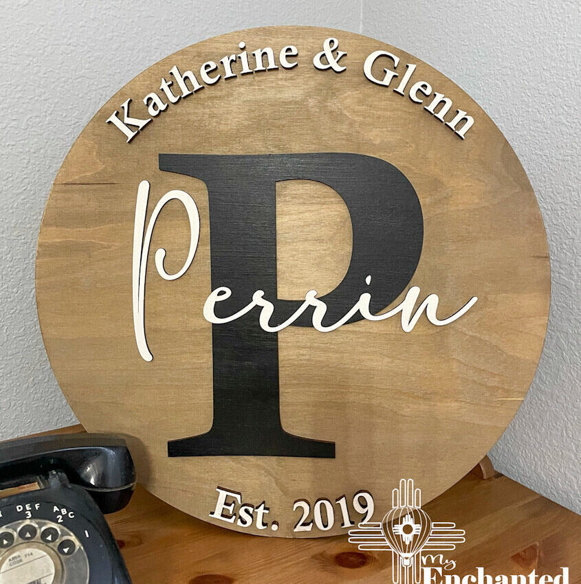 Family name sign can be ordered in sizes 12″, 14″, 16″ and 18″ in diameter and is made of 1/4″ birch wood that is stained with Rusted Weather wash to give it a natural brown wood color. Makes a perfect gift for any occasion, but I personally give them to newlyweds and as anniversary gifts. A proof will be sent to email used at check out within 24-hours. Processing time is 3-5 days.